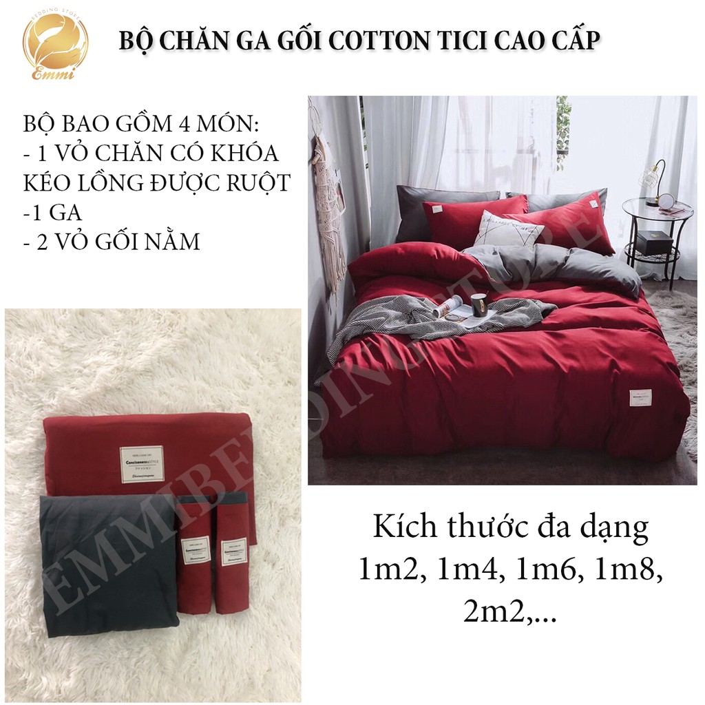 Bộ chăn ga gối cotton tici K'home set 4 món cotton hoạt tính trơn nhiều màu lựa chọn