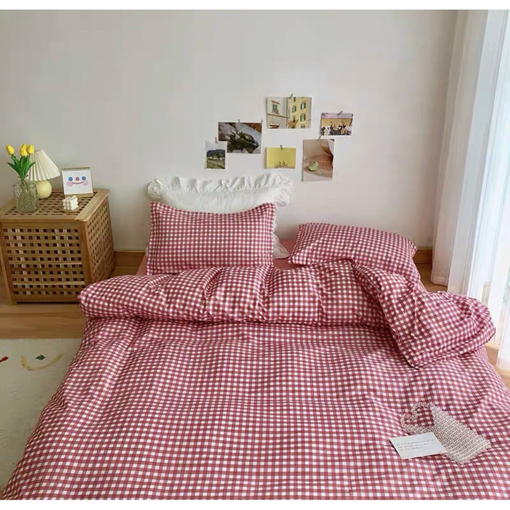 Freeship- Chăn ga gối Emmibedding chất liệu cotton poly họa tiết kẻ caro đáng yêu đủ size miễn phí bo chun mua tại đây