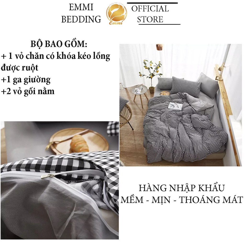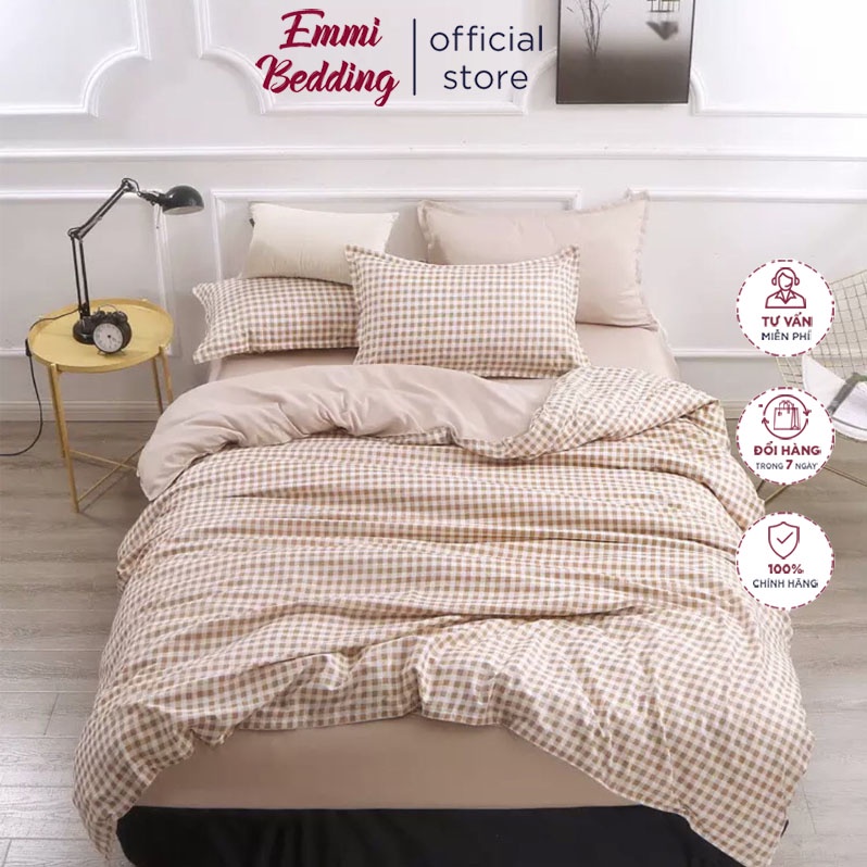 Chăn ga gối Emmibedding chất liệu cotton poly họa tiết kẻ caro đáng yêu đủ size miễn phí bo chun free ship