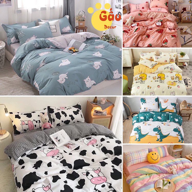 Bộ chăn ga gối Cotton Poly nhập khẩu Decor Bedding họa tiết đáng yêu đủ size ga giường free ship