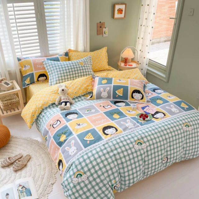 Trọn bộ vỏ chăn ga chun gối đầu chất cotton poly free ship