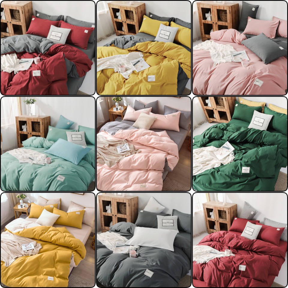 Bộ vỏ chăn ga gối nhập khẩu cotton TC trơn phối màu , Inbox chọn Size ga free ship